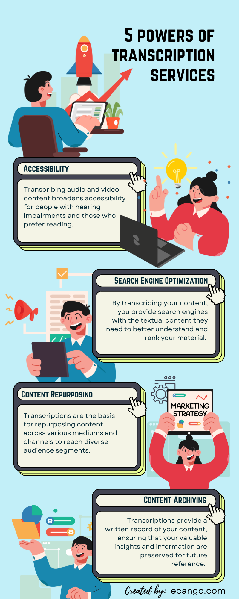 Transcriptions provide a valuable resource for repurposing content. You can extract key insights, quotes, or statistics from transcriptions to create standalone blog posts, social media updates, or infographics.